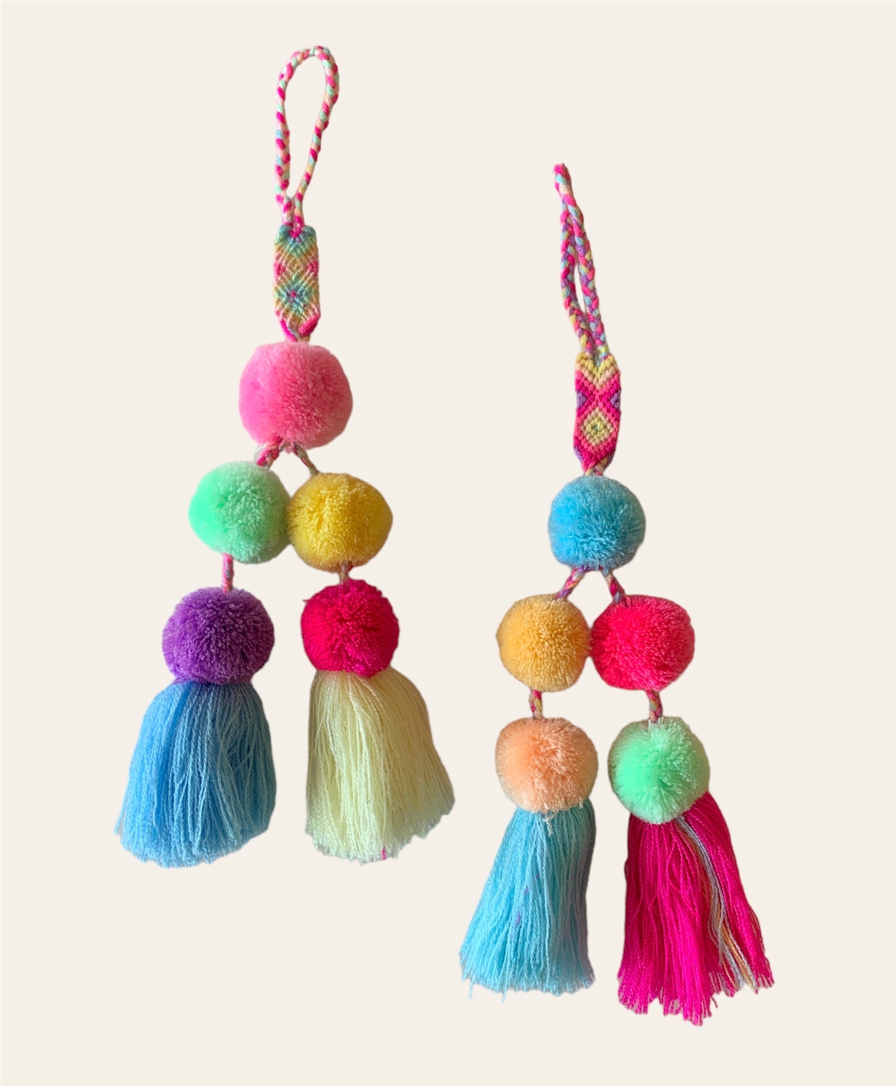 Select you favorite handmade pompom tassel and combine it with your new handbag